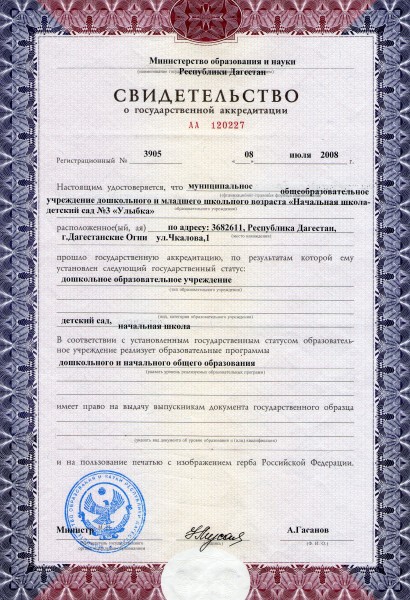 Свидетельство о государственной аккредитации